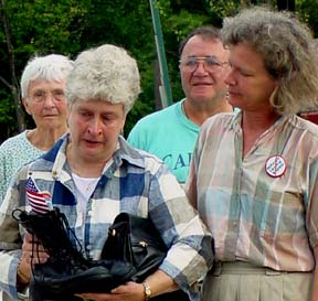 Andrew and Luke Toritto were proud to take a stand for peace and justice on the Greenfield Common in October. These young peace makers remind us what it's all about. Their parents Joe and Lucy Toritto have deep commitments to peacemaking.. (© 2002 C. Jenks) Continually updated by Charlie Jenks and Sunny Miller