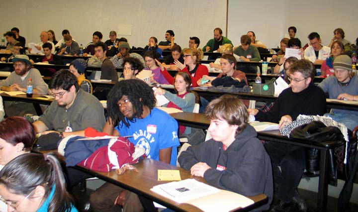 100 students from 26 campuses nationwide convened in NYC for the Campus Antiwar Network's 3rd annual organizing conference. On Saturday, the conference offered 11 workshops - a series of skill-building workshops followed by educational workshops that included such topics as the occupation of Palestine; resistance to occupation in Iraq; the history of ROTC and the militarization of campuses (audio of this presentation available as mp3 - 21:55 min; 7.6 mb or RealAudio for dialups; lessons from the student movement against the Vietnam war; and a seminar on whether withdrawal from Iraq is possible. Presentations on the history of ROTC and the We will post the post-conference statement from CAN when it is available.