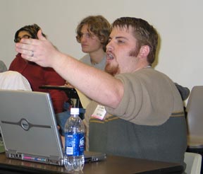 Mike Hoffman, Iraq War veteran and a founder of Iraq Veterans Against the War, gave the keynote address. Mike addressed what war in Iraq is like from points of view of soldiers. It's NOT like it's presented by US mainstream media. His talk is available for download and non-profit use as an mp3 file - 13:34 minutes; 4.7 mb or as RealAudio for dialups.