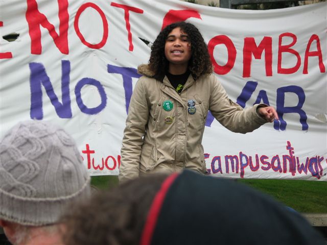 Speakers spoke about the complicity of the administration in the war and its support of the military, about the tradition of student power and protest on our campus, about the racism that permeates american policy from targeted recruitment of minorities to the practices of the IMF and WTO, among many other things. Aimee Alison of the Oakland Green Party spoke about her experience being recruited, and a current active duty soldier under the condition of anonimity spoke about his opposition to the war. Due to the unfortunate coincidence of the death of the 2,000 soldier in Iraq, Cindy Sheehan was unable to attend as she was in Washington DC.