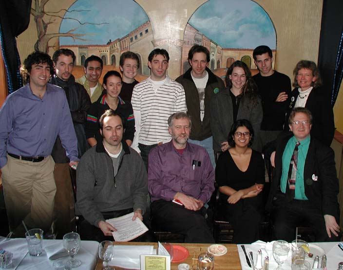 A consensus best of three group pictures taken. We could all agree to peace, but could not all manage to look at the camera at the same time. Front row sitting: David, Jeremy, Ms. Bassi and Charlie Jenks of Traprock Peace Center; standing: Jason, Eric, Tim, Lauren, Stef, Eric, Mike Zmolek of National Network to End the War Against Iraq, Jen, Ben and Sunny Miller of Traprock.