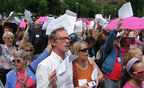 Video: Holly Near singing "I am Willing" (quicktime - 18 megabytes) and Cindy Sheehan, Goldstar Families for Peace, addressing hundreds gathered in Lafayette Park in front of the White House (57.90 megabytes) Video and photos copyright © 2006 Charles Jenks.