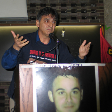 Juan Torres, speaking of the killing of his son Juan Torres, Jr., in Afghanistan. photo ©2005 Charles Jenks