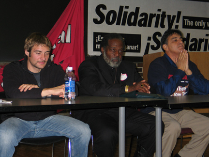The Plenary featured four speakers. David Airhart is a veteran and student who serve in both Iraq and Afghanistan and current is a member of the Kent State Antiwar Coalition, a chapter of the Campus Antiwar Network. He is faces possible expulsion for hanging a banner on top of a rock climbing wall that was erected by military recruiters on October 19, 2005. David was participating in a campus antiwar protest organized by KSAWC. Darby Tillis spent 4 years on death row before he was acquitted and later pardoned - he advocated for Stan "Tookie" Williams, who faces being killed in California on December 13, 2005.; Juan Torres, Goldstar Families for Peace parent of Juan Torres, Jr. who was killed in Afghanistan, and Alan Maass, editor of the Socialist Worker newspaper. Please find below audio of the talks given by David Airhart and Alan Maass. The sound quality during Airhart's talk degraded significantly midway through the talk due to a problem with the sound system. It was an important talk as he described abuse of detainees and the murder and mistreatment of Iraqis. Due to technical problems, we do not have the audio of Darby Tillis and Juan Torres, but have Alan Maass's stirring speech that capped the presentations.