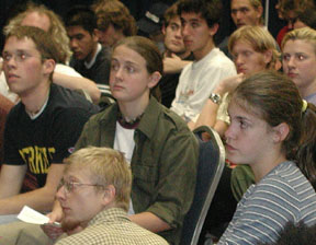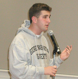 Students Against War in Iraq at George Washington invited Charlie Jenks of Traprock Peace Center to speak. He said that this war can't be stopped without student opposition, pointing out that the Vietnam War would not have been stopped without it. He stressed the importance of the listserv for organizing and sharing information. He referred to the October 31 events organized by the Stop The War coaltion in the UK and the potentials for communication and networking with students on the West Coast, the UK and elsewhere.